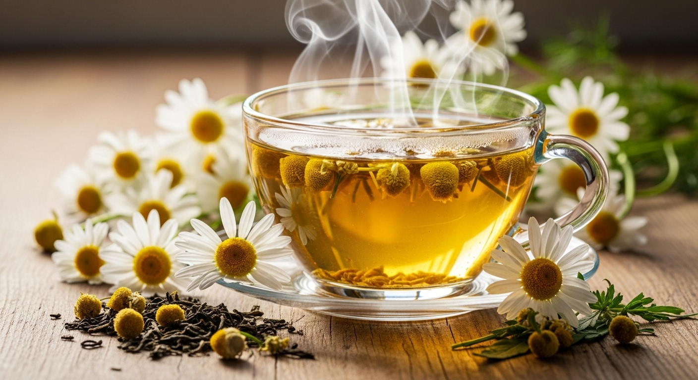 Chamomile tea is an infusion made from the dried flowers of the chamomile plant, a member of the Asteraceae family. There are two main types: German chamomile (Matricaria recutita), which is more common and potent, and Roman chamomile (Chamaemelum nobile), known for its sweeter flavor. Unlike true teas from the Camellia sinensis plant, chamomile is an herbal tisane, meaning it’s naturally caffeine-free and safe for evening consumption.